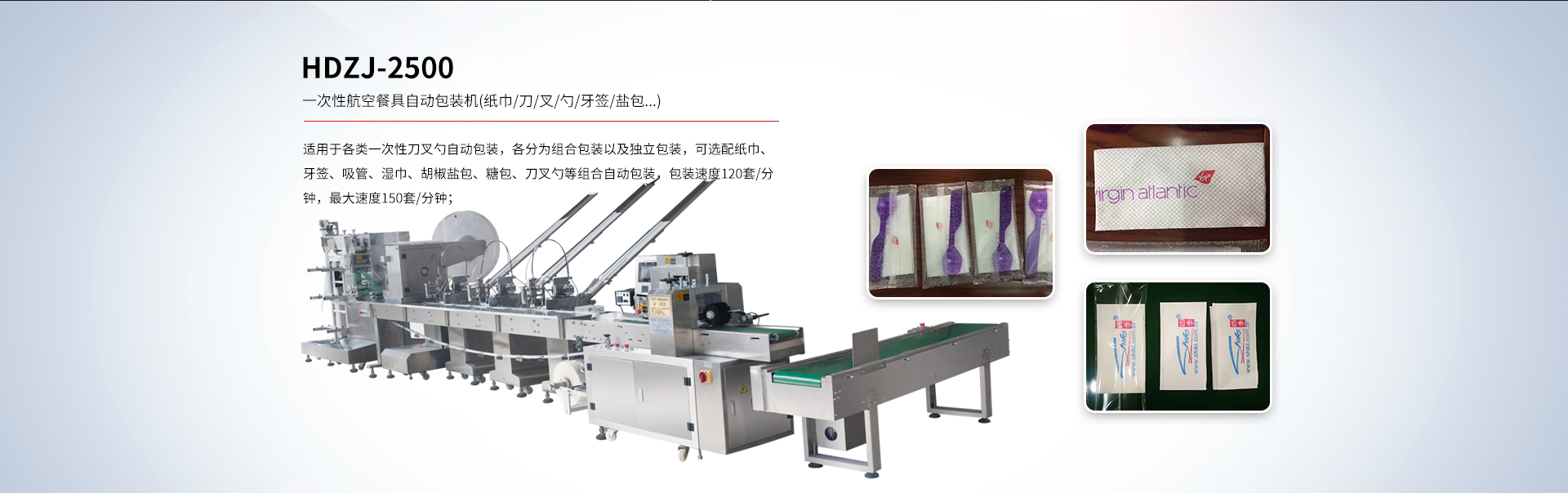 貴司專注于研發(fā)一次性紙巾筷子餐具包生產(chǎn)線、紙巾刀叉航空餐具包裝生產(chǎn)線、一次性餐具套裝四邊封生產(chǎn)線、塑料杯(碗)、吸管全自動點數(shù)自動包裝機及五金(塑料)制品包裝機等各類包裝機。